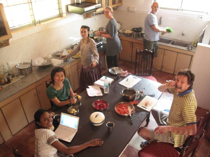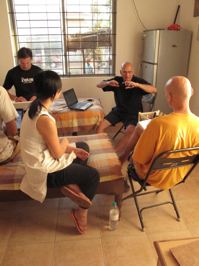 There are a group of students from all over the world (Malaysia, Germany, France, Italy, England, and America) studying with Jag, and the atmosphere is very communal. Breakfast and lunch are shared meals and everyone helps cook. The food is also cooked according to Jag’s specifications. Meals include a lot of unpolished rice, a ton of vegetables and spices, and very little oil. It might sound austere, but the meals have been amazing and everyone comes to the table with a hearty appetite. I have especially enjoyed the luscious breakfasts of pineapple, papaya, banana, oranges, figs, nuts, raisins, coconut, and honey. This isn’t a diet, it is a lifestyle, but it is a lifestyle where you can eat like a horse and lose weight.
