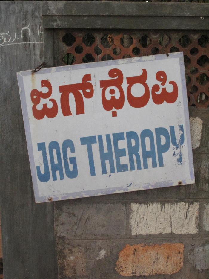 I have also enjoyed the ambiance of the clinic. The clinic occupies the same property as Jag’s house where he lives with his daughter’s family. He also keeps cows so he can make his own yogurt and cheese from good quality milk. The cow shed is right outside of his office and when you watch him treat patients you here the soft clinking of cow bells and his grandchildren playing outside and they often visit him while he treats patients. While I find it peaceful and a wonderful environment for healing, I’m not sure the patients appreciate three or four foreigners looking on while they are getting treated. The Hindu women are especially modest. I have been fascinated to watch people from all walks of life come here to get treated, including many foreigners who have come to Mysore to study Ashtanga Yoga and somehow can’t sustain a 90 minute back bending classes without hurting themselves.