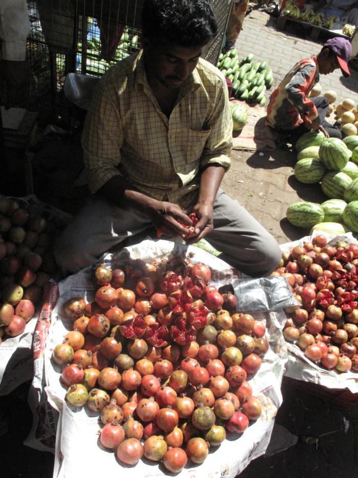 Bangalore is famous for being the call center capital of the world and after being in the countryside for so many days it was a shock to the system to be back in a big city. As is the way in India, nothing is ever as it seems and in the middle of a concrete jungle we stayed at The Green Path hotel, an oasis of green living. The owner of the hotel, H.R. Jayaram, is a known leader in the environmental movement in Bangalore. The Green Path has solar water heaters, a biogas tank that provides cooking fuel from composted kitchen waste, and the courtyard and patios are designed to grow herbs and vegetables. The hotel also owns an organic farm near Bangalore which supplies food to the hotel.