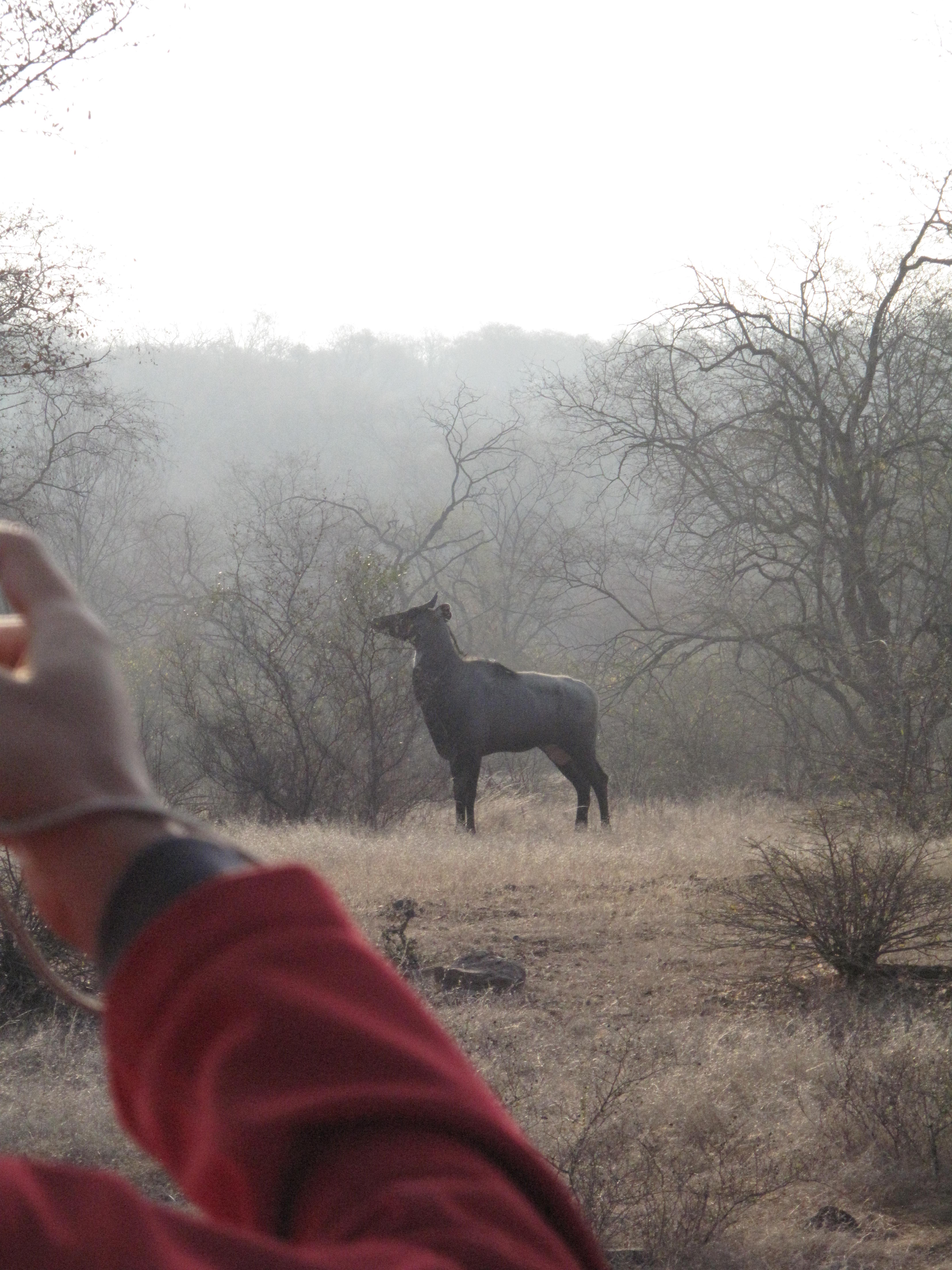 From Bangalore I headed back to the North to tour take a tour with Steve’s friend Rachel. The first stop on our tour was Ranthambore, one of India’s finest tiger reserves. The park used to be the hunting ground of a maharaja. Now Ranthambore houses 40 of India’s 1411 wild tigers. My guide book said that this was one of the best places to spot tigers in India. It was not our luck to see a tiger, but we did see a lot of tiger food: deer, nilgai or blue bull, chinkara or Indian gazelle, and the tiger’s favorite food, the sambar deer. Half a kilometer from a ranger station we viewed the well cleaned carcass of a sambal deer, evidence of a well fed tiger. We also saw the ubiquitous monkeys and peacocks of India’s wild areas, a giant crocodile, and several species of birds.