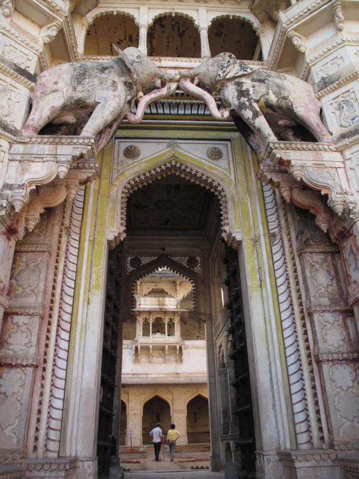 The excited call, “Gori! Gori!” (“White Girl! White Girl!) from the group of men that worked at the boarder tax booth between Rajasthan and Madhya Pradesh was further evidence that few foreign tourists passed this way. One of the guys shoved a bunch of fresh chick pea stalks into the car window as an offering. The fresh peas picked out of their pods are a seasonal snack in India and you see people carrying bunches of them to sell or snack on. They invited us to tour their modest temple behind the tax booth and fed us bananas and asked us the common introductory questions about marital status and how many sisters and brothers we have. As soon as we sat back in the car pleasant and hospitable experience was marred by one of the more enterprising men who asked us for “dollars” for our afternoon snack. We smiled awkwardly, kept our “dollars” and drove away.