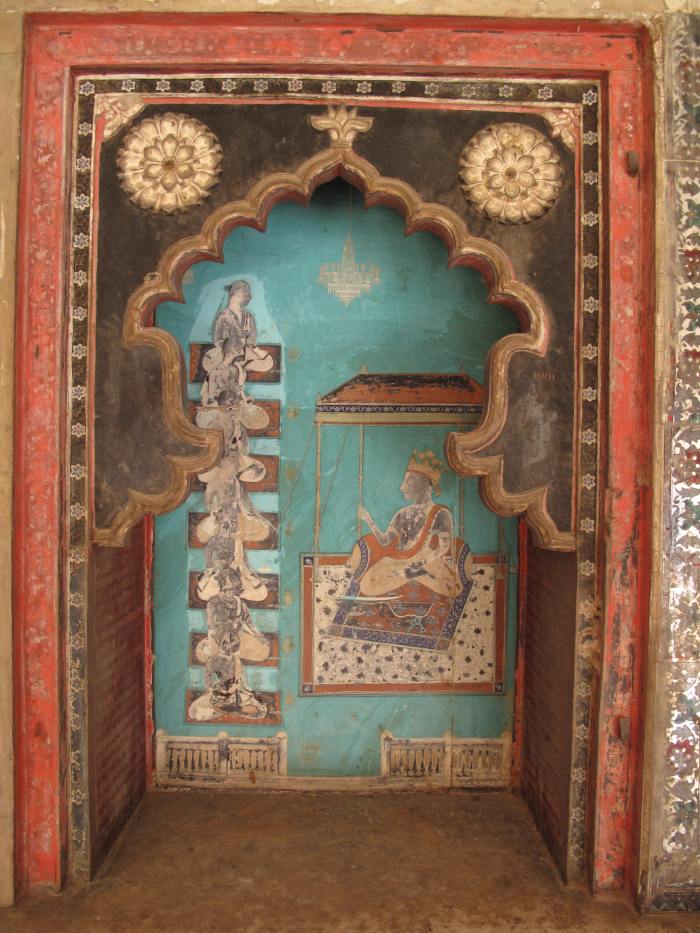The blue hued town of Bundi was the next stop on our tour. Like Jodpur the Bhramin caste paints their houses blue and Bundi appears well populated with them. Bundi was much smaller and quieter than Jodpur and a place I would have liked to stay at and relax for a couple of days if the town’s lake had not smelled like a septic system. The town’s palace is now in ruins, but still retains its graceful beauty and hosts an amazing collection of miniature paintings on its decaying walls.