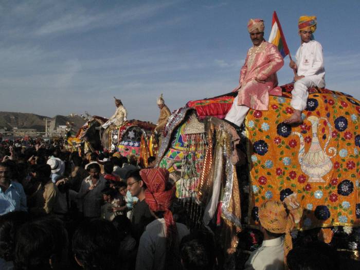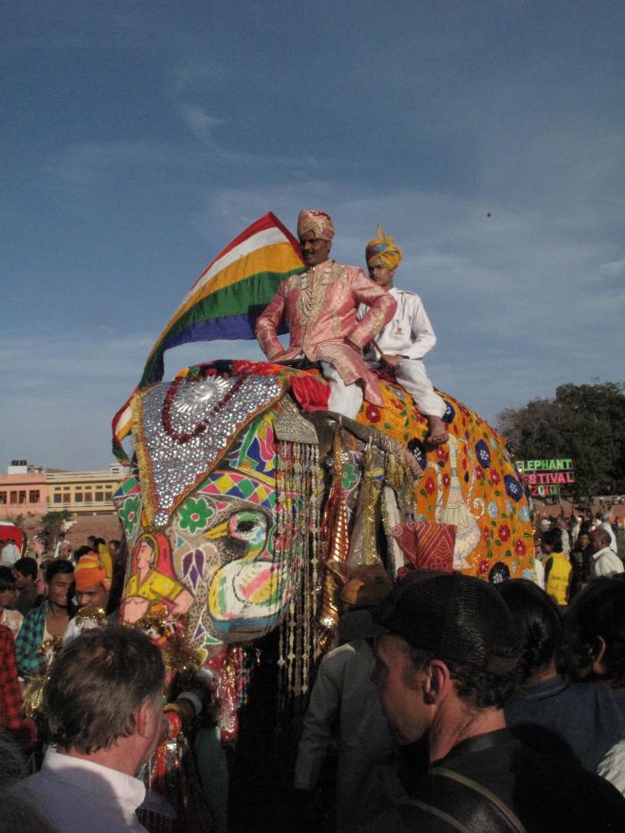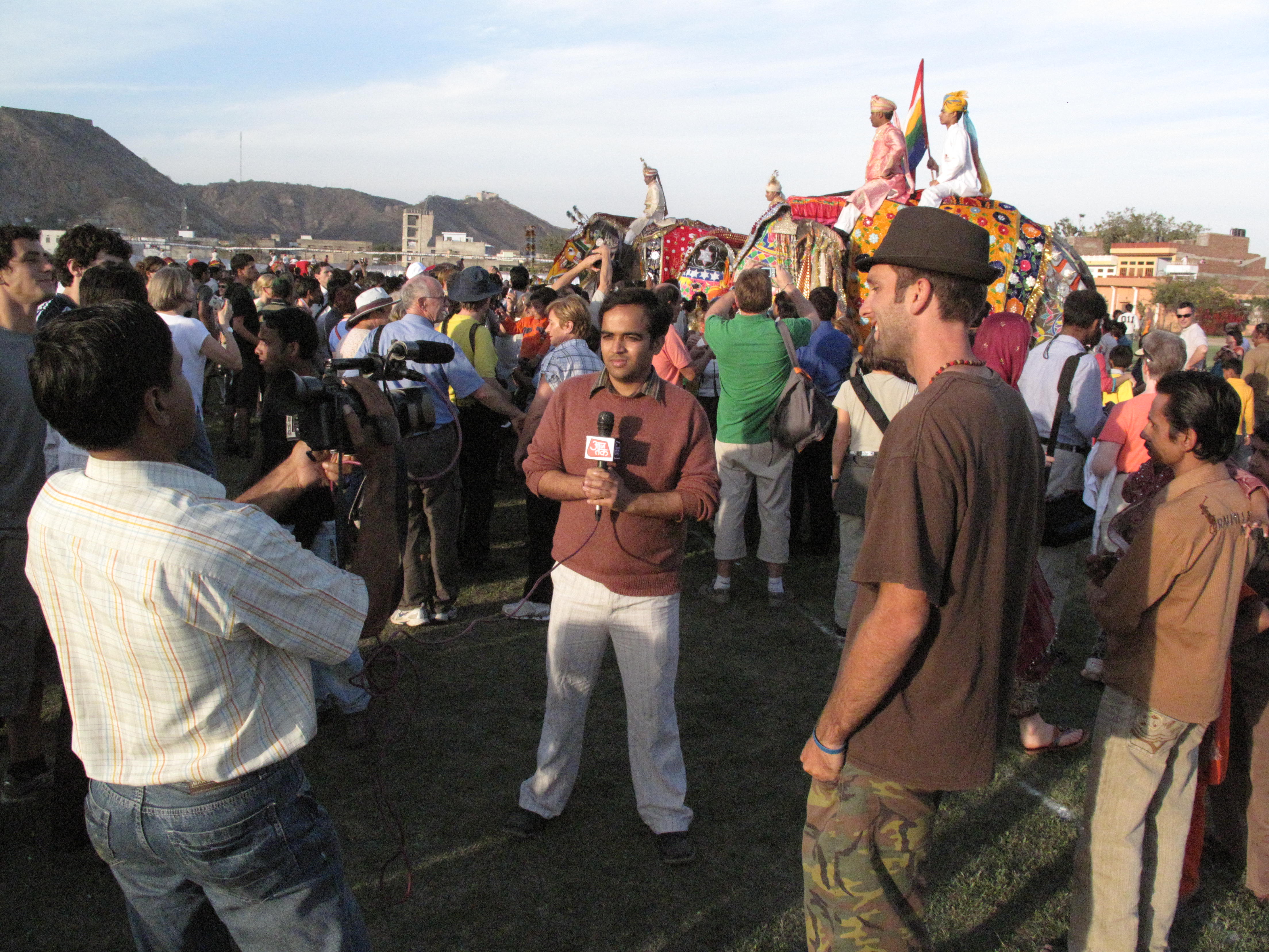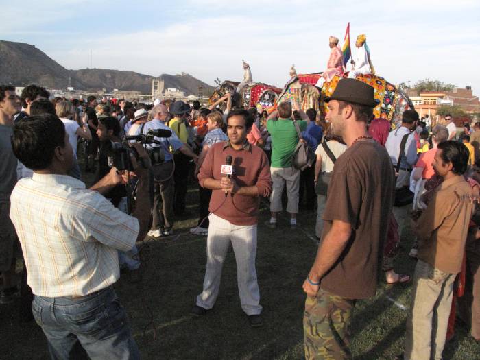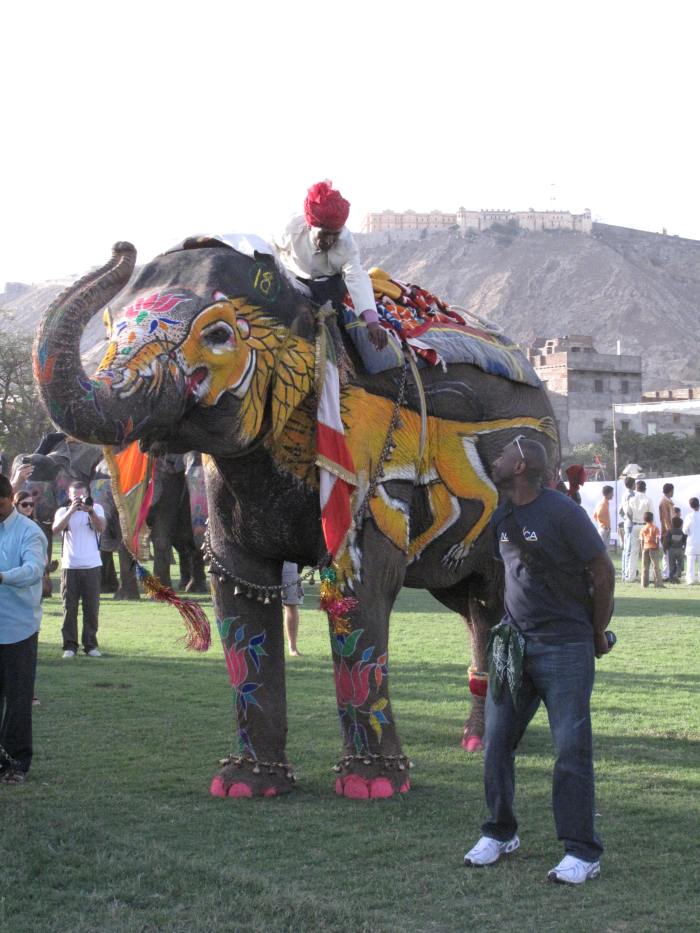 Back in Jaipur, we re-joined the hordes of foreign tourists at the Elephant Festival. TV crews interview many foreigners – including myself and my friend Steve. There were some contests with the elephants, like elephant football–in which more than one beach ball met its unnatural end, but the elephant decorating contest was definitely the highlight of the festival.