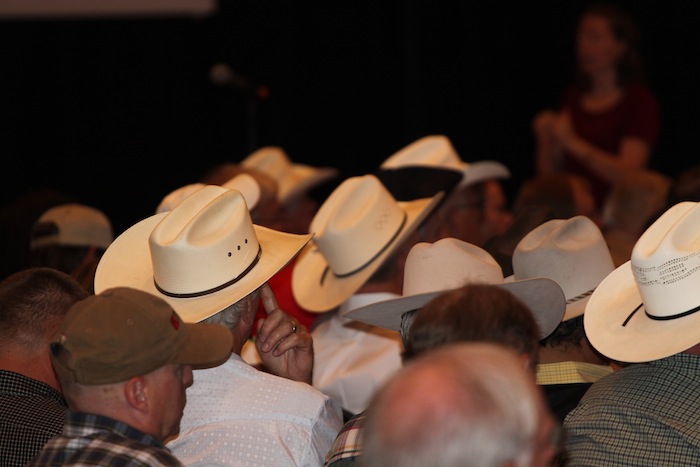 The next day at the actual workshop a long line of people filled Colorado State University’s student center long before the doors opened. Several groups of people arrived on busses hired specifically to take them to this event. Many people from Nebraska slept on the bus through the night to arrive at the workshop early in the morning. The non-profit R-CALF was trying to get 25,000 people to attend the event. The USDA took them seriously and even asked the Agriculture Economics Department, who hosted the event, to hire a helicopter to patrol the plaza – a request the Ag Econ Department declined. A little less than 2,000 people attended the event, but they came from all over the country, from Texas, Florida, Kentucky, and even New York. Ranchers, feeders, packers, union representatives, people from non-profits, and anyone else who wanted to attend and stand in line at 7 in the morning, made it through the door and had the chance to add their comments to the public record.