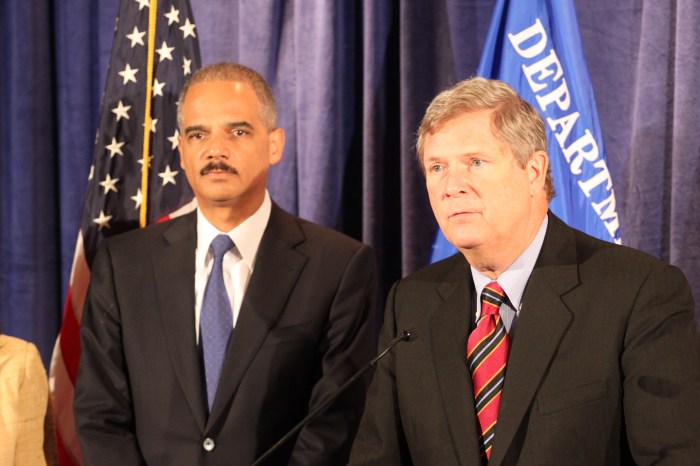 Attorney General, Eric Holder on left, Secretary of Agriculture, Tom Vilsak on right (photo by Kris Hite)
