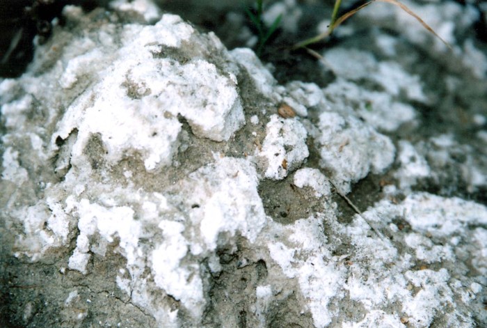 This photo is from a slide show presentation about a farm in Punjab that used biodynamic methods to rehabilitate the soil. Pictured here is a saline crust on the soil from the overuse of fertilizer.