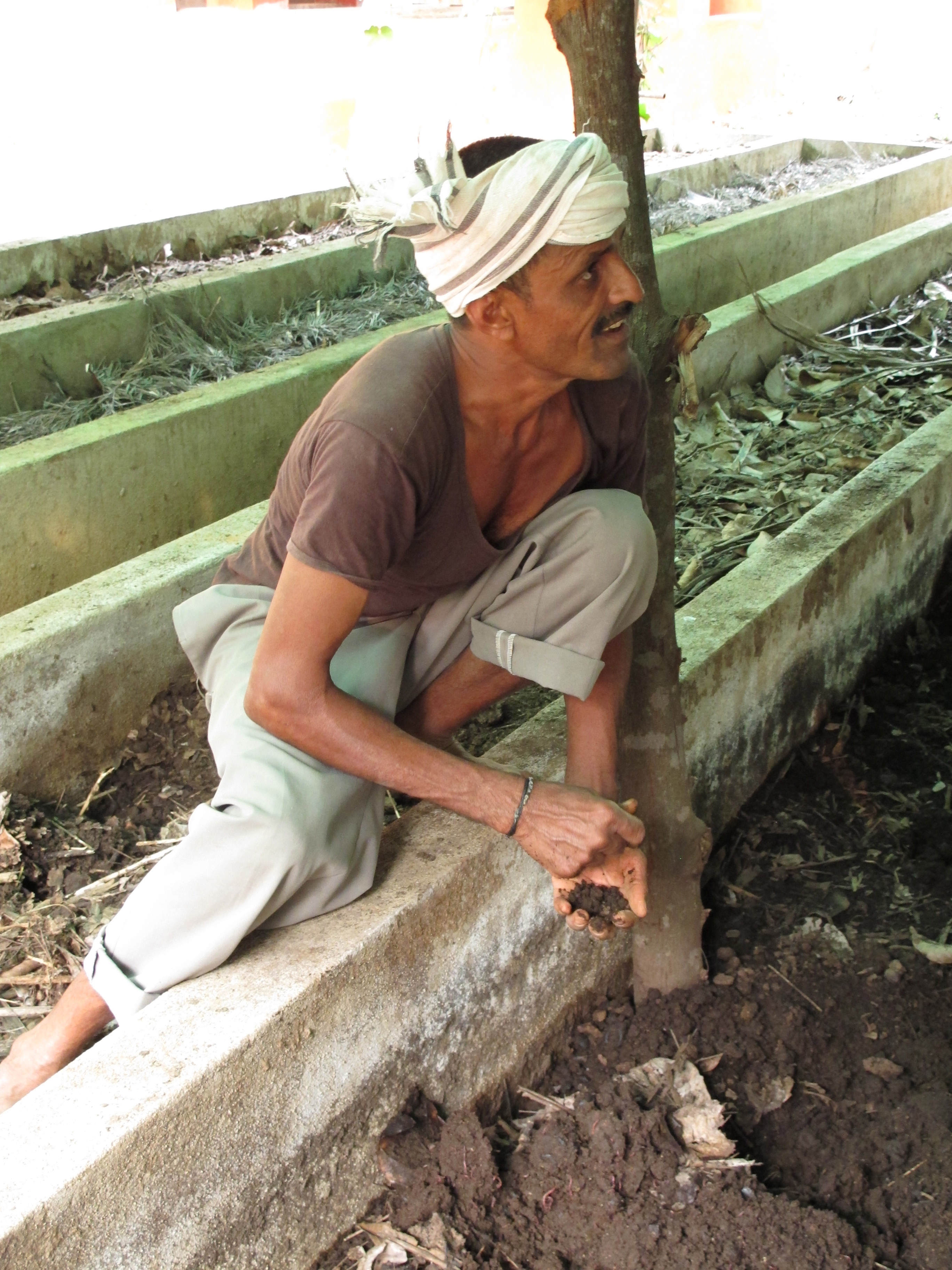 Earthworms and manure are also used to make vermicompost compost. A vermicompost facility at a farm near Bangalore pictured here.