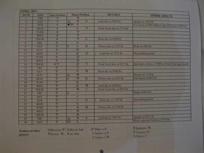The use of preparations, planting of seeds, and harvesting of plants is regulated by a biodynamic cosmic almanac. This guide is published every year and helps farmers try to harness the cosmic cycles of the universe to help their fields prosper. This extremely detailed month-by-month reference guide tells farmers the astrological sun and moon positions. It also documents which planets may influence the growing cycle. And advises planting and harvesting based on the waxing and waning of the moon. The calendar also marks special days when the moon crosses the earth’s rotational plane and when the moon is closest to the earth and farthest away during its elliptical orbit, respectively called perigee and apogee. Steiner viewed the orbit of the moon as it made its 27.5 day trek around the planet, the earth’s monthly breath. The constellations oriented farmers through the seasons as the earth made its way through the zodiac. Different constellations also represented different parts of the plant. For instance, Virgo, Capricorn, and Taurus represent roots and soil elements and applying preparation 500, which benefits roots, is supposedly extra effective on these days. Other constellations represent leaf/water, flower/air, and fruit/seed respectively. Steiner believed that people could harness these natural rhythms of the earth and the cosmos to capitalize on life forces that can’t be visibly seen, but the manifestations of which would be visible in the success of the farming practices themselves.