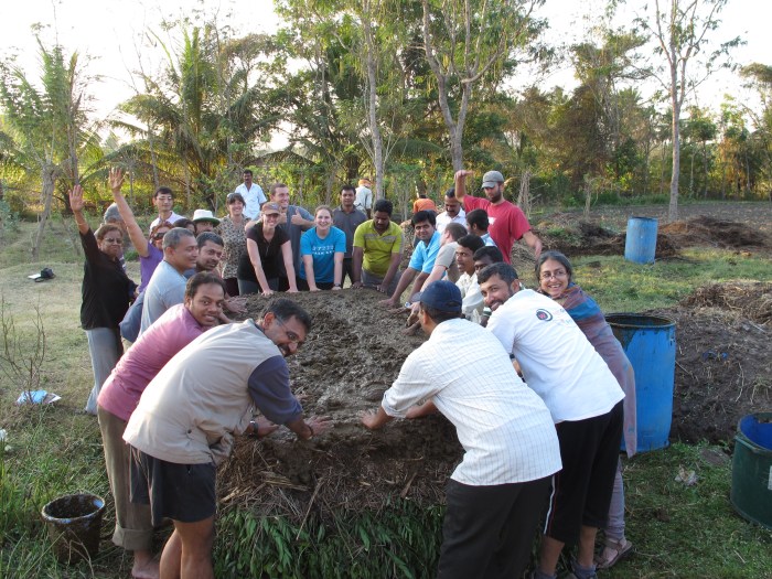 Recently, my dad told me, half-joking, that he reads my blog to get an education in manure. Well, Dad, this blog is for you. Biodynamic farming is a style of farming that relies on manure and urine (preferably from cattle) to make compost and “preparations” that help harness the cycles of the earth and solar system to maximize crop yield, increase biodiversity of plants and animals (wild and domestic), manage pests, and to raise the energetic frequency of the farm. I often hear the phrase “beyond organic” used to describe biodynamic farming and if you think “conventional” farming practice are correct or normal, biodynamic farming may indeed sound “out there”, but at the BASIL Biodynamic farming workshop held in Mysore, India, I would get an in depth understanding of the logic behind this style of farming and, yes, and education in cow manure.