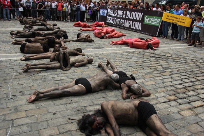 The protest, called “The Running of the Nudes,” happens two days before the first Encerino to draw awareness to the fact the bulls will be killed in a display of public execution during the bullfight as well as the connection between tourists and the bull fighting industry in Spain.