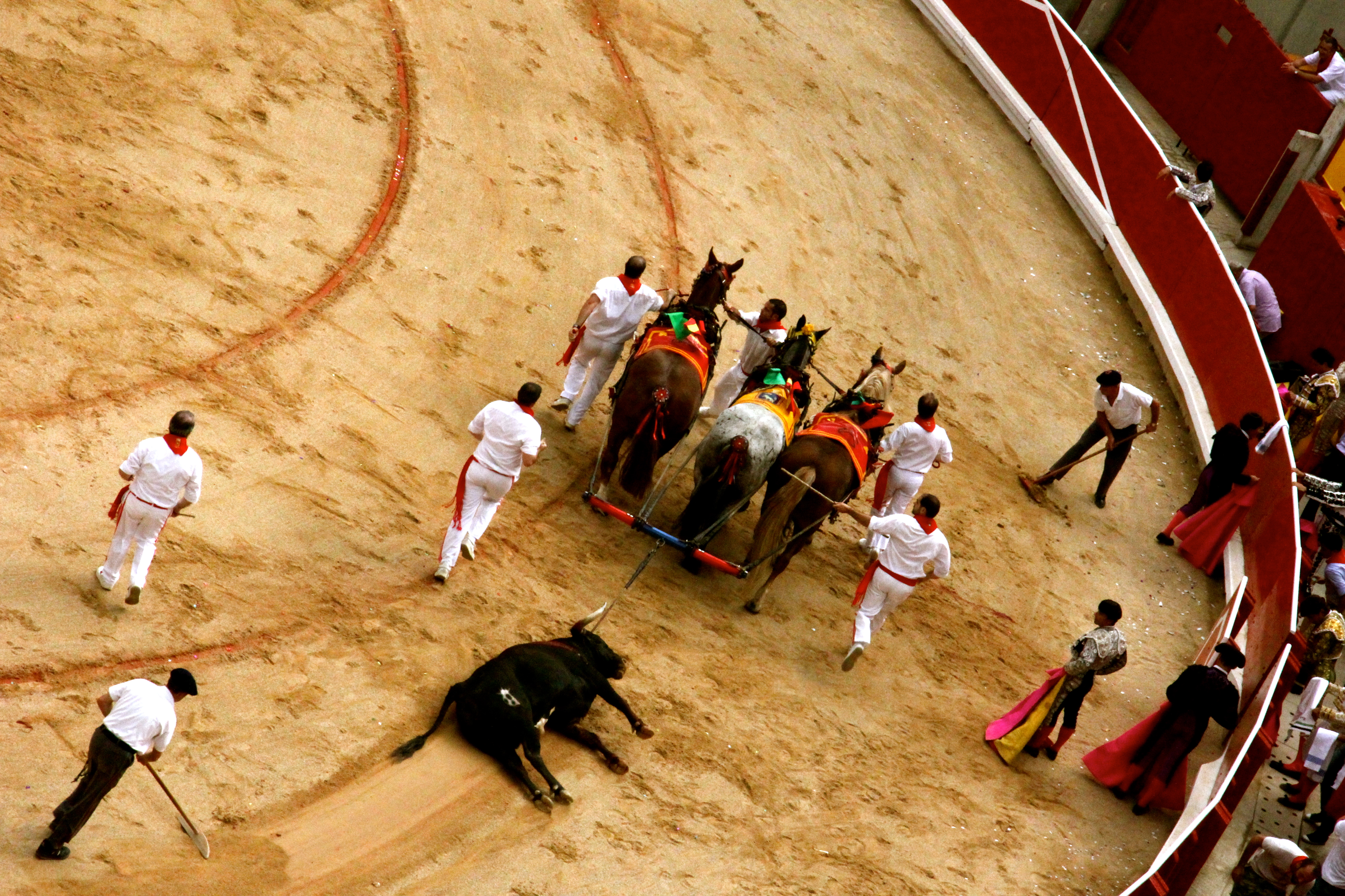 Real life death is not usually on display for us in day-to-day life or in our venues of entertainment. This is the moment before the matador’s assistant deals a death blow to a mortally wounded bull’s spinal chord.