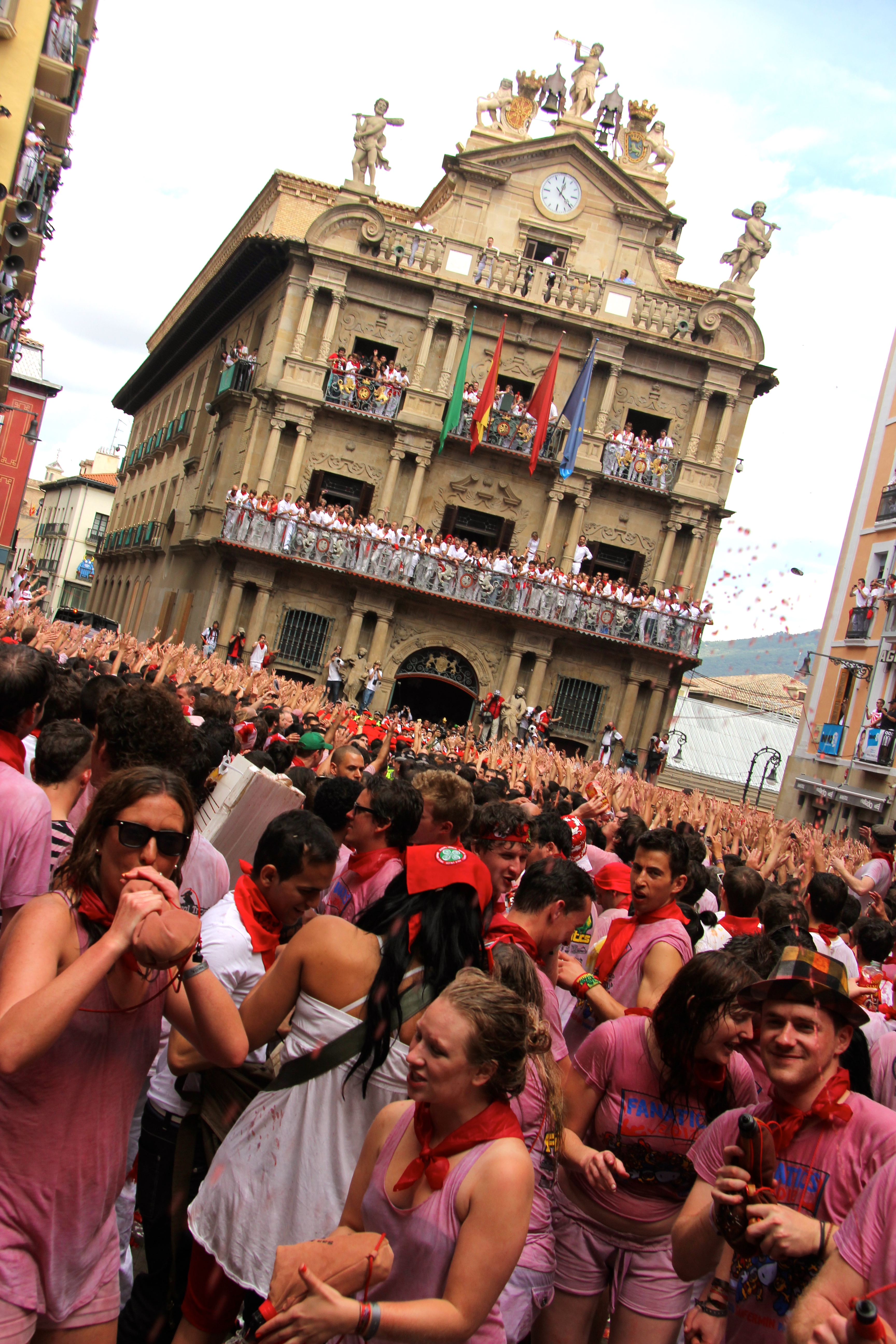 The square in front of Town Hall witnesses many of festivals events. Bull runners gather in the square before 6:45 a.m. to guarantee a spot in the bull run.
