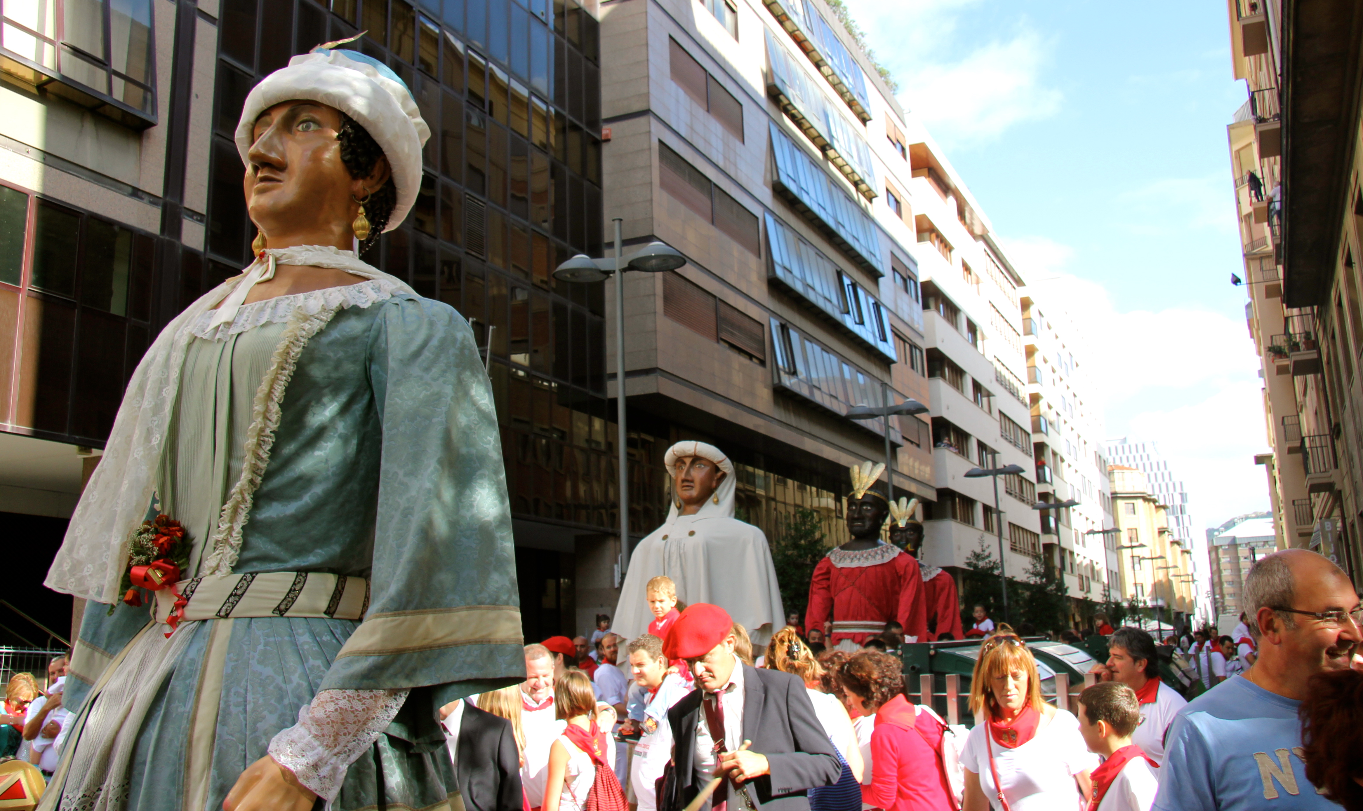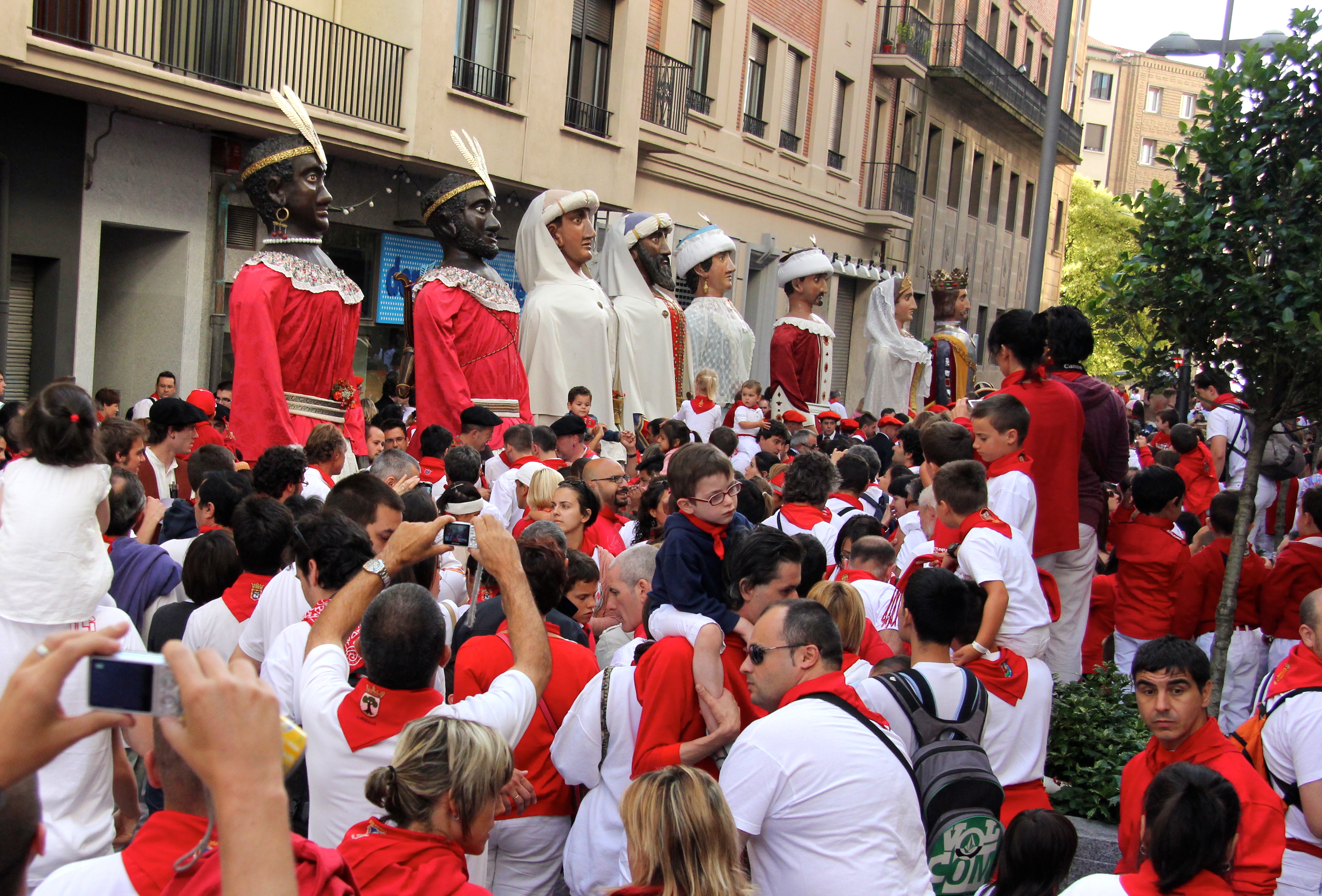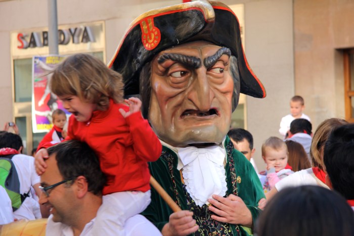 Another popular feature of the festival is “The Parade of Gigantes y Cabezudos (Big Heads and Giants)” that occurs every day at 9 a.m. leaving from the bus station. The “giants” were created out of papier mache in 1860 and represent kings and queens from the four different continents, Europe, Asia, America and Africa. The “big heads” consist of zaldikos that look like they are mounted astride horses and kilikis, trickster figures that chase children and women with foam truncheons.